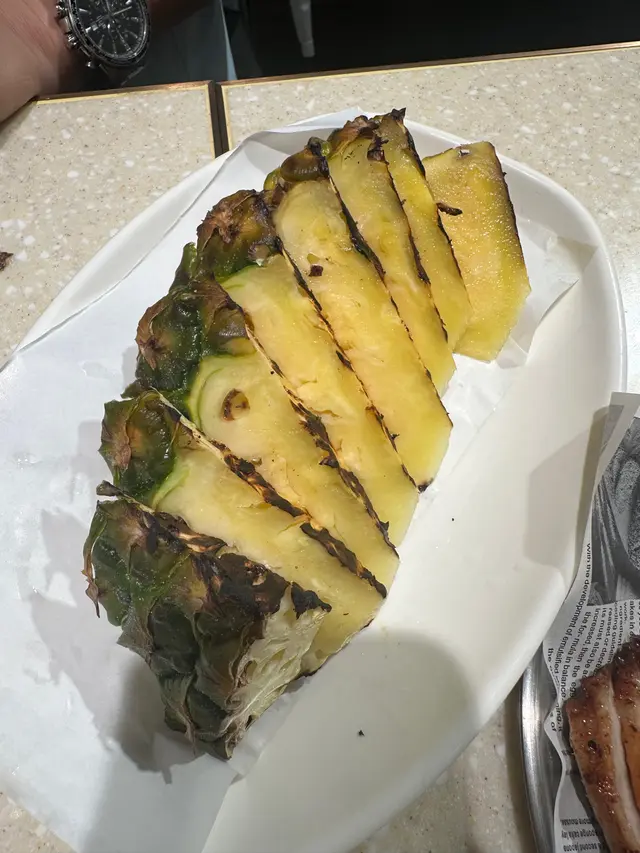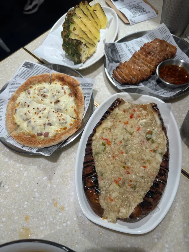 我哋就叫咗雞全翼 秋刀魚 原條茄子同菠蘿 個茄子啲蒜頭多到嚇親我 真係好香蒜味 另外個燒菠蘿都勁甜又多汁 做飯後果就啱晒