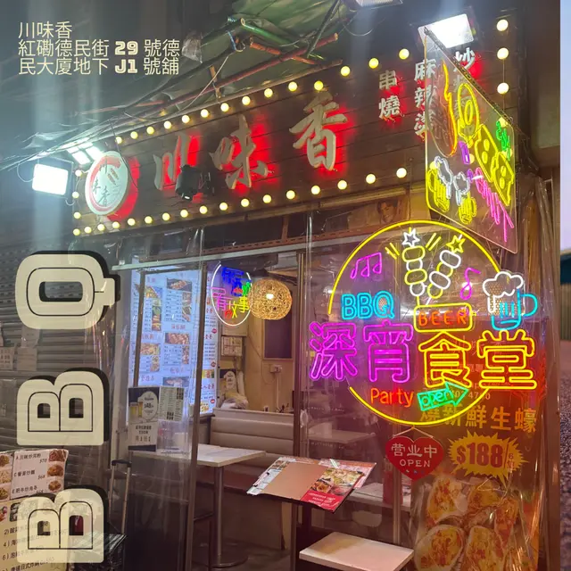 舊區隱世串燒店 WhelancLevel 42024-10-22138 views Follow 知道紅磡同土瓜灣區舊區重建將會有好多舊舖拆掉或者關閉,最近多咗去嗰邊食飯,今次一個人選擇去買串燒返屋企睇住電視慢慢食,由川味香到返屋企嘅時間唔算好耐,返到屋企打開外賣仍然熱辣辣,而且仲有好濃嘅辣味▪️炸大腸,:當日嗌過嘅串燒最出色嘅一款,辣粉滲入左每個豬腸入邊嘅核心,咬落去相當惹味,而且大腸炸得外脆內軟,絕對超乎我嘅味覺美味指數:🌟🌟🌟🌟🌟▪️雞皮:同樣非常出色,外賣回家仍然脆卜卜,每塊皮都食到香脆同埋辣味美味指數:🌟🌟🌟🌟🌟▪️雞軟骨:相比其他串燒,雞軟骨認為比較多肥肉,所以唔算10分香脆美味指數:🌟🌟🌟🌟▪️司華力腸:腸好大條好粗,但係食到腸嘅中心仍然係熱辣辣,所以非常滿意美味指數:🌟🌟🌟🌟🌟1The above review is the personal opinion of a user which does not represent OpenRice's point of view.LikeShare舊區隱世串燒店 川味香 https://s.openrice.com/QrKT09P9N00Report Post Ratings5Taste4Decor5Service4Hygiene5ValueDining MethodTakeAwaySpending Per Head$100 (Dinner)