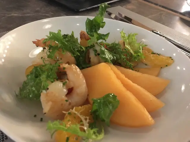 頭盤我叫左生牛柳,牛肉無咩味,但d汁幾好味。朋友們叫左洋蔥湯、巴馬salad、蝦salad。大家個樣都幾滿意。