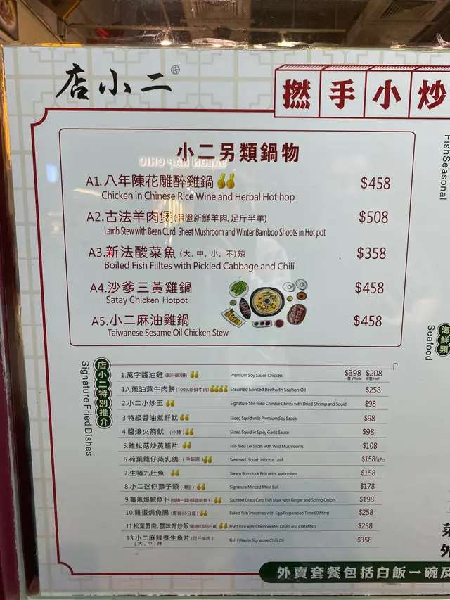 舊香港小菜館 suetyanwLevel 42025-04-02494 views Follow 呢間小菜館真係好有舊香港嘅味道,設計好有情懷,彷彿返到以前咁。👍🏻薑蔥爆鯇魚卜薑蔥爆鯇魚卜好好味,魚卜好爽脆,用薑蔥爆香好惹味。👍🏻萬字醬油雞萬字醬油雞係必試,雞肉好嫩,好Juicy,三種醬油嘅味道好有層次,特別係李錦記甜豉油隻味,真係好正!👍🏻避風塘茄子避風塘茄子滑滑地,外面炸得好香脆,食得好過癮,絕對係香港小菜嘅代表。👍🏻麻辣鵪鶉麻辣鵪鶉就有啲驚喜,微辣嘅味道好特別,加埋皮蛋,食落去真係好有層次。👍🏻小二迷你獅子頭最後,小二迷你獅子頭真係令我驚艷,裡面竟然有原隻鮑魚,肉質鮮嫩,食完真係好滿足。The above review is the personal opinion of a user which does not represent OpenRice's point of view.LikeShare舊香港小菜館 店小二 https://s.openrice.com/QrKT0AprR00Report Post Ratings5Taste5Decor5Service5Hygiene4ValueDining MethodDine In