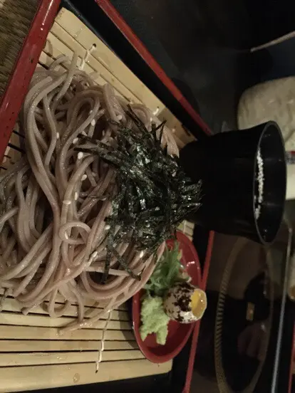 冷篙麥麵。配以特制醬料連鵪鶉蛋,將兩者混在一起,一撮撮喬麥麵沾來吃,麵質QQ彈牙,味道清香。