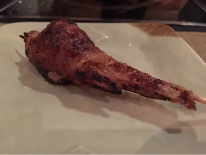 雞翼里的鴨肝很難看得到流出來的油脂,入口都是粉嫩的感覺,被脆薄的雞皮包著,雞皮的脆香混以鴨肝的鮮美,兩者味道互相輝映,一試難忘。