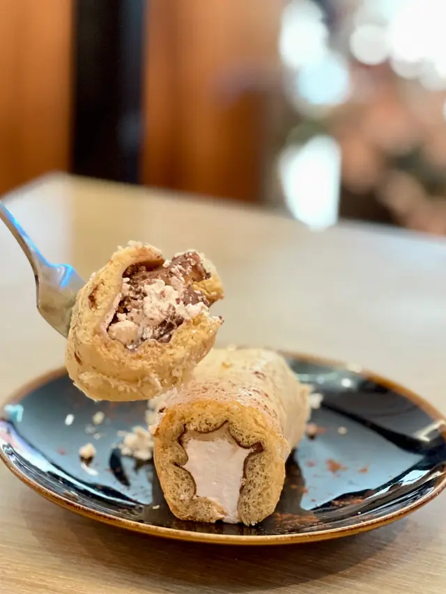 忌廉卷外層好鬆軟,外層卷住花生醬、黑朱古力同忌廉,每啖都食到花生醬同黑朱古力既味道,非常好味😋