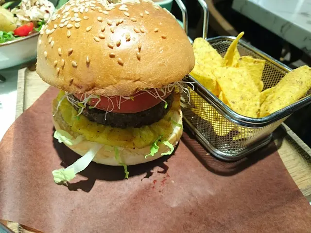 素漢堡也頗出色,內中有素漢堡扒同菠蘿,好香!超讚!