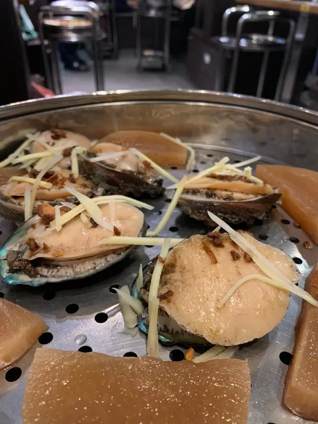 鮑魚㨂左果皮蒸,算大隻既!配蘿蔔,正常就唔會同時間熟既,應該之前蒸完。有小小蘿蔔乾既感覺。