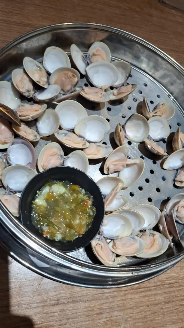 蜆我地配左泰式醬,未上枱果陣都驚佢淋上面咁樣。原來佢放旁邊等大家自己點。辣得幾過癮既。全部大大隻又無沙,每人都有五六隻。