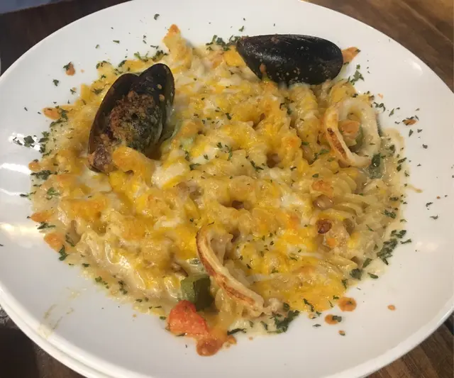 跟住就上芝士海鮮螺絲粉,海鮮有三款,青口,魷魚,同蝦,材料豐富,芝士汁都幾多,啖啖都食到芝士汁包住d螺絲粉同埋焗得啱啱好,唔會焗到乾哂,下次黎都一定會再叫