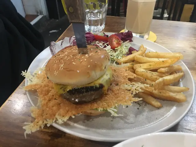 最後就上burger,burger塊牛肉漢堡十分高水準,煎到有少少濃但係又保持到好juicy同好重牛味,仲有一大塊芝士脆脆,個包都好好食,薯條同頭先嗰碟一樣,都係粗薯條,仲有沙律菜伴碟