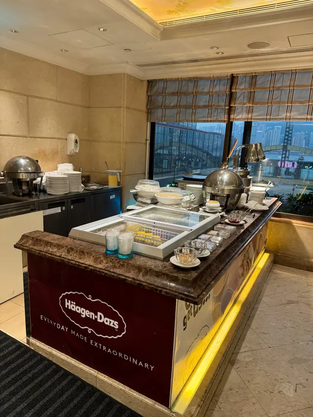 甜品水果雪糕區:一整個甜品櫃滿滿都是甜品,還有雪糕區域,提供Haagen-Dazs的杯裝雪糕,除了最普通的味道,還有其他特別的飲柚子檸檬馬卡龍味,這個真的值得一讚。