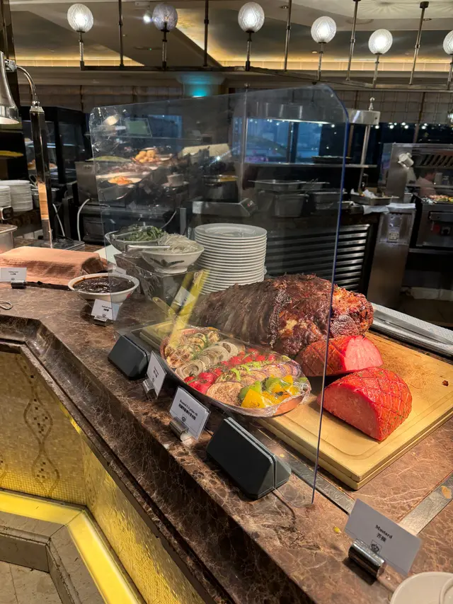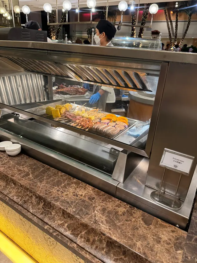 熟食區:有串燒、肉眼扒、羊架、三文魚、炸蠔、蒜蓉粉絲蒸扇貝etc,每一款都熱熱的,不錯。串燒比較失色,不夠乾身。每人可以憑券拿一碟芝士大蝦,味道不錯,但是真的需要憑券拿這樣誇張嗎?