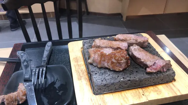 主菜終於到了,上枱時只係一成熟,客人要按自己嘅要求再燒熟塊肉
