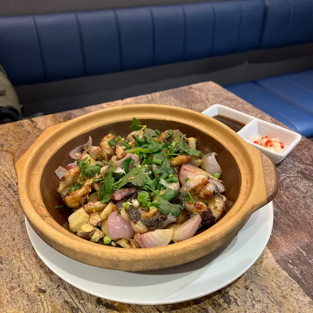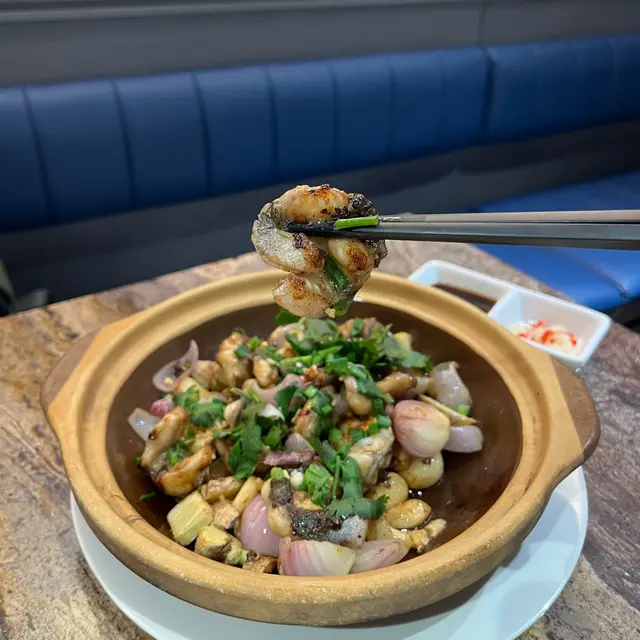 以新鮮的白鱔魚片,搭配大量蔬菜如洋蔥,蒜子,芫荽製成。白鱔外皮香脆,肉質彈牙,配上特別醬料更能突出白鱔的鮮味。用砂窩上菜更加能夠保存食物的溫度,不用怕白鱔冷卻後會變得腥,十分推薦。