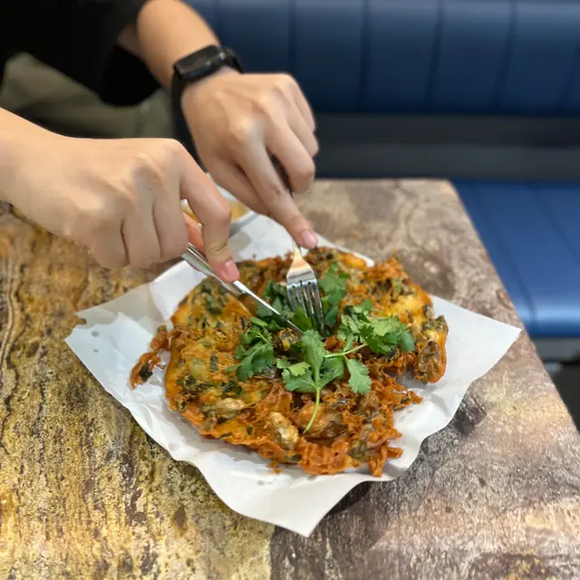 蠔餅有很多款式,潮式蠔餅比起台式蚵仔煎更加香脆和乾爽。蠔仔加上麵糊後煎至金黃酥脆。蠔的鮮味與麵糊的香氣相互融合,味道相當美味。配上魚露更是把鮮味提升到另一層次。