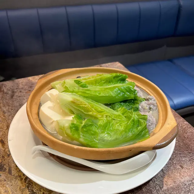 這道菜以爽口彈牙的鯪魚球為主要食材,搭配生菜,豆腐和香菇煮成。湯底雖然清淡但十分鮮甜,十分適合吃完先前的美食後沖一沖口腔。