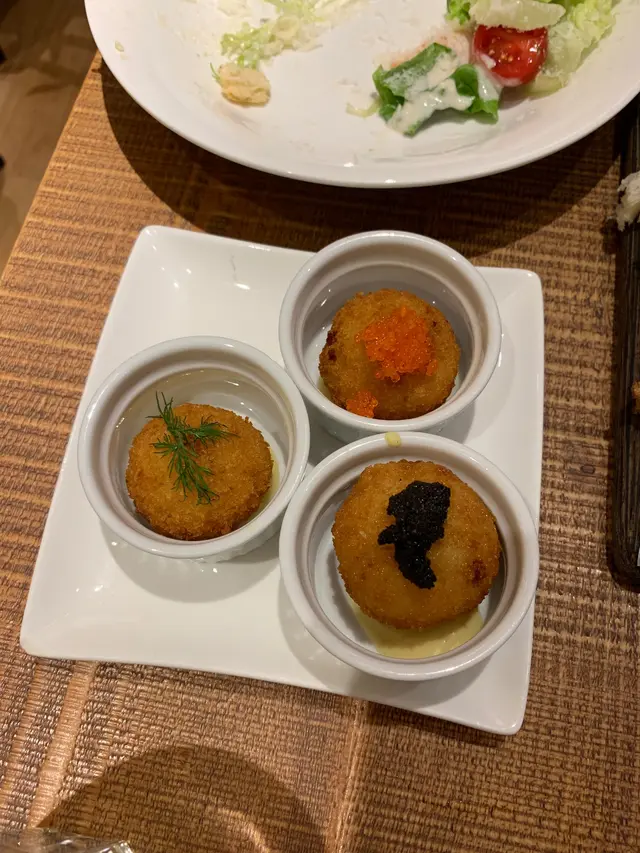 芝心帕爾馬火腿薯茸球: 有一點可惜是芝士不夠流心, 薯茸味重, 但整體都好食。