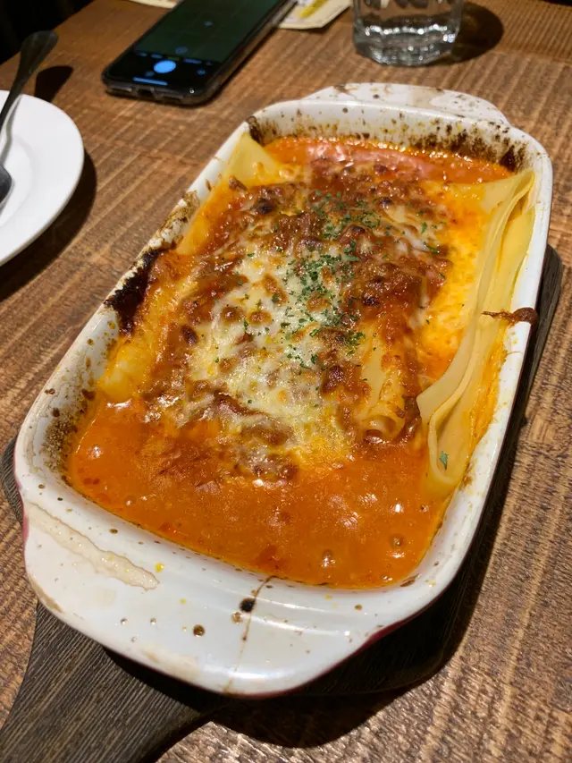 芝士肉醬千層麵: 芝士狂熱者必點, 新鮮焗起的千層麵, 切開來加上芝士的柔軟, 令人十分療癒。