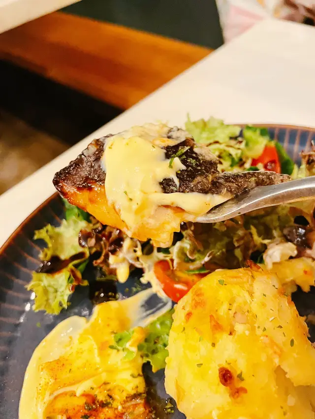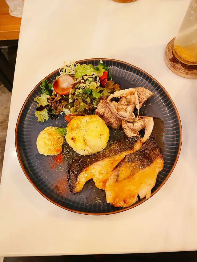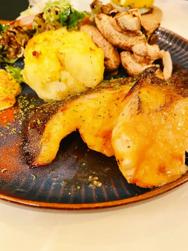 擺盤精緻,燒得剛好,輕易把肉分開,除左肉質雪白,口感嫩滑,入口即化。西京燒醬汁甜味突出,鹹甜平衡。配菜有烤菇、薯容,甚有日式風情。