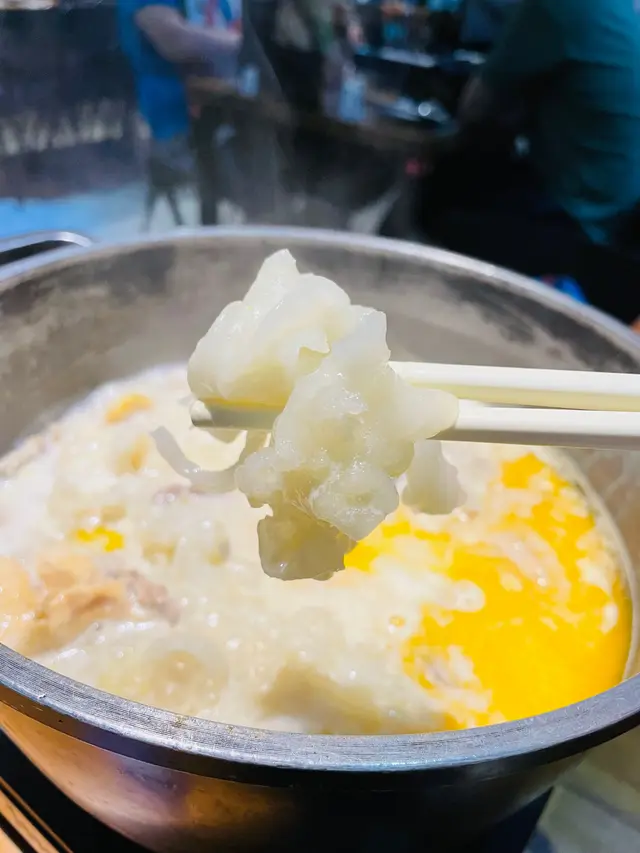我地2個人就嗌左半隻雞🐔入面湯底由鮮雞🐔、花膠、秀珍菇🍄、螺片而熬成~