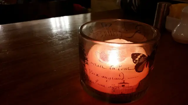 微黃昏暗,桌面上有點點燭光