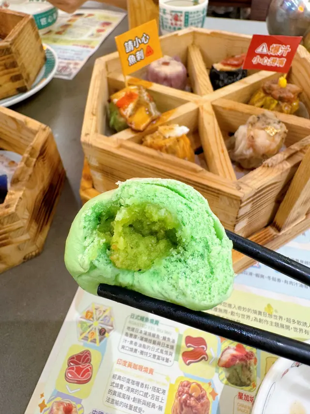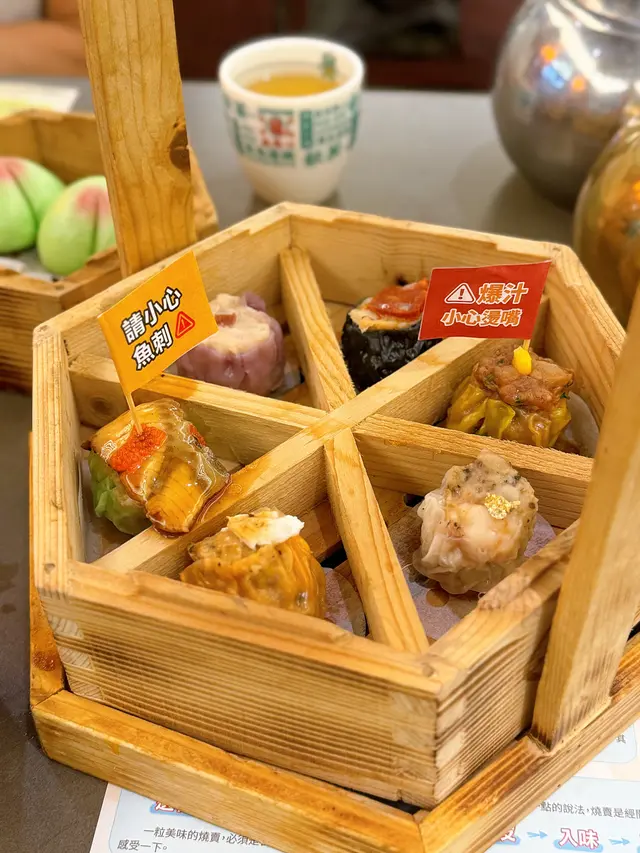 一籠有齊六款不同的燒賣:中國金華火腿燒賣、日式鰻魚燒賣、星加坡黑胡椒蟹燒賣、印度黃咖喱燒賣、西班牙辣肉腸燒賣和德國鹹豬手燒賣,各有特色💛
