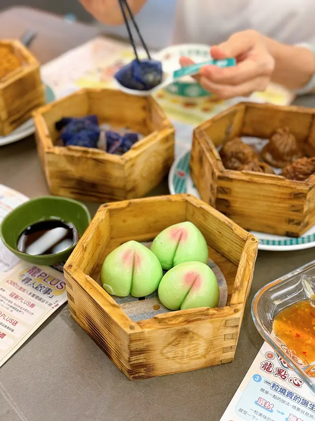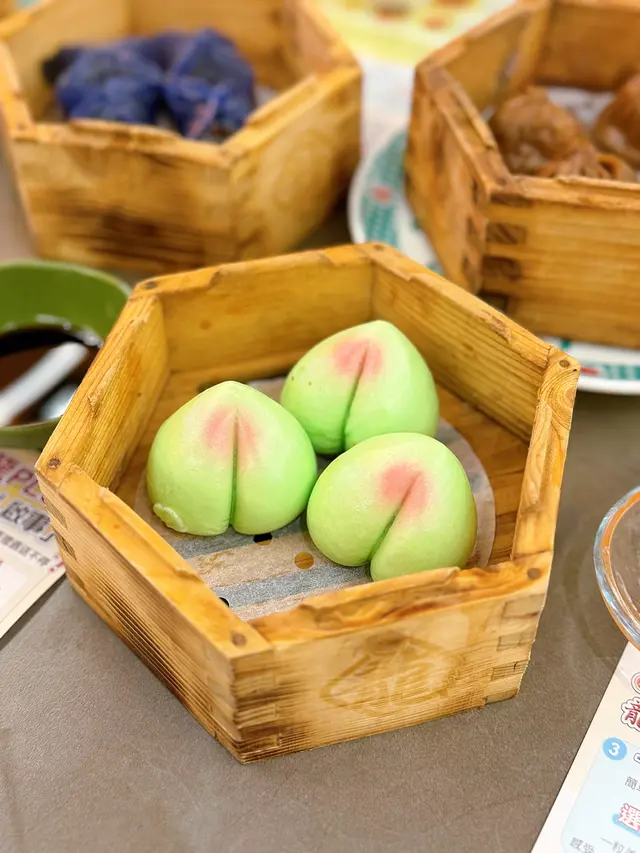 內餡是斑斕麻蓉的壽桃,確實有斑斕味,皮薄餡靚😋