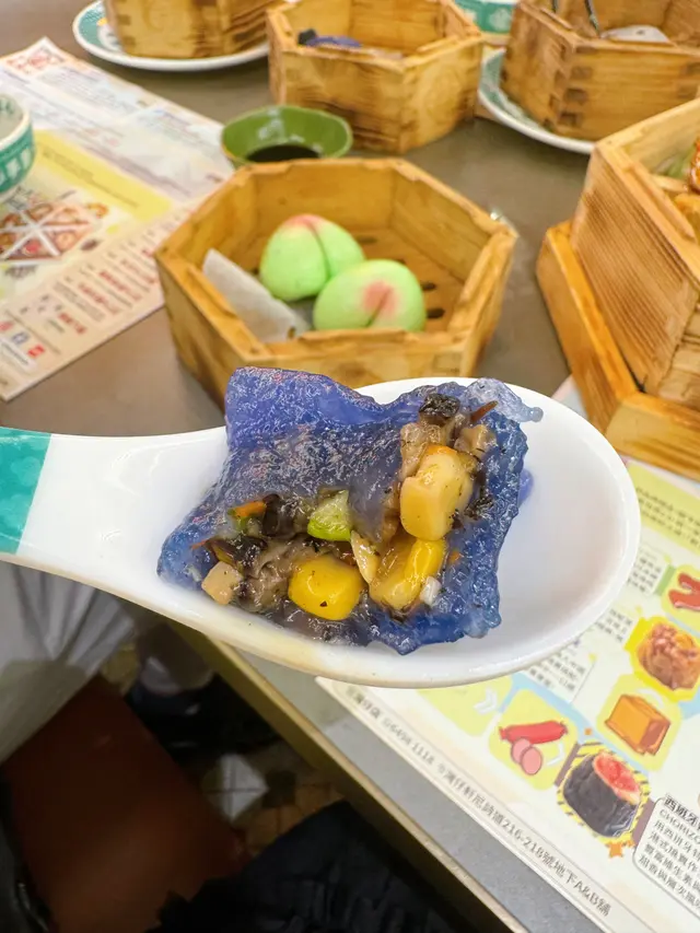 應該是用了蝶豆花做了紫藍色的外皮,非常吸睛。內裏的惹菌粒粒亦非常充足,富有松露香味☺️