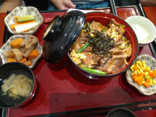呢個飯旁邊仲有好多一碟碟嘅小菜,有豆腐,紅蘿蔔黃豆,紅蘿蔔蓮藕漬煮,好豐富,食落有好多唔同嘅口感