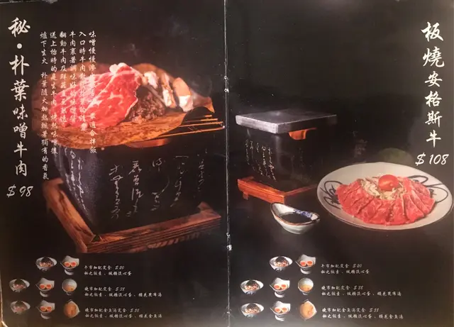 - 板燒安格斯牛 $108 (+$20加配定食)-