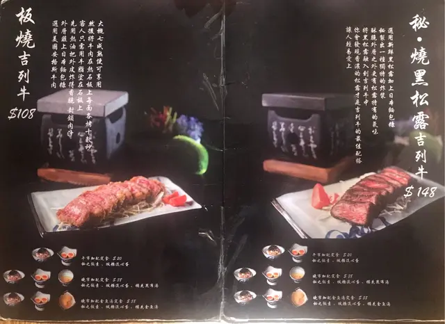 - 板燒吉列牛 $108 (+$20加配定食)-