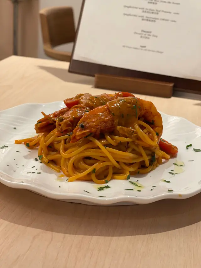 個味其實同紅蝦意粉似好似,同女友交換試吓,但係換咗龍蝦,龍蝦肉更有咬口更爽,感覺再正啲