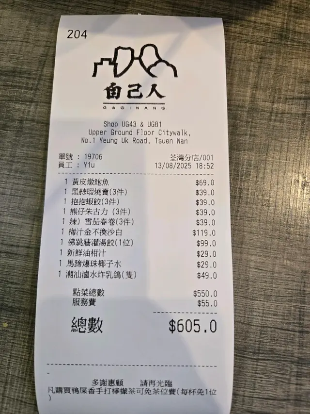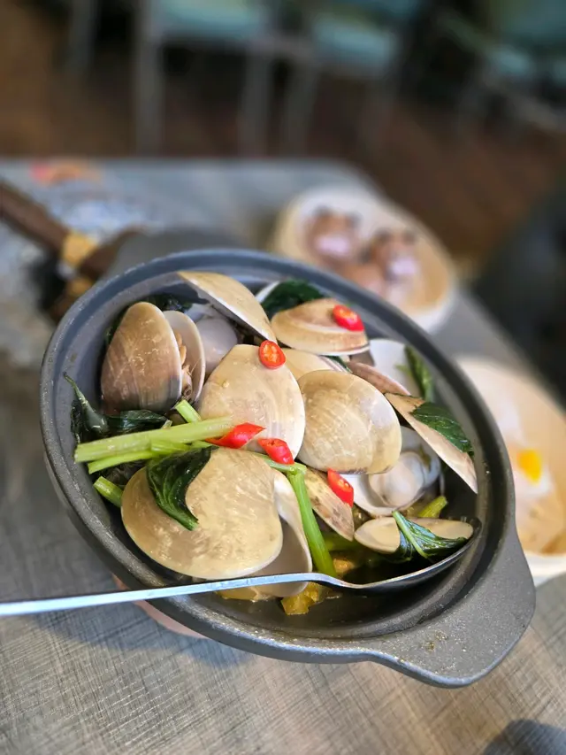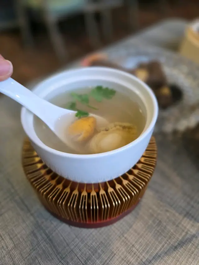 「梅汁金不換沙白」的口感亦很特別,辣中帶酸,正合我地心意。最後,我們還試了「佛跳牆灌湯餃」和「黃皮燉鮑魚」,非常特別;每一口都是享受。