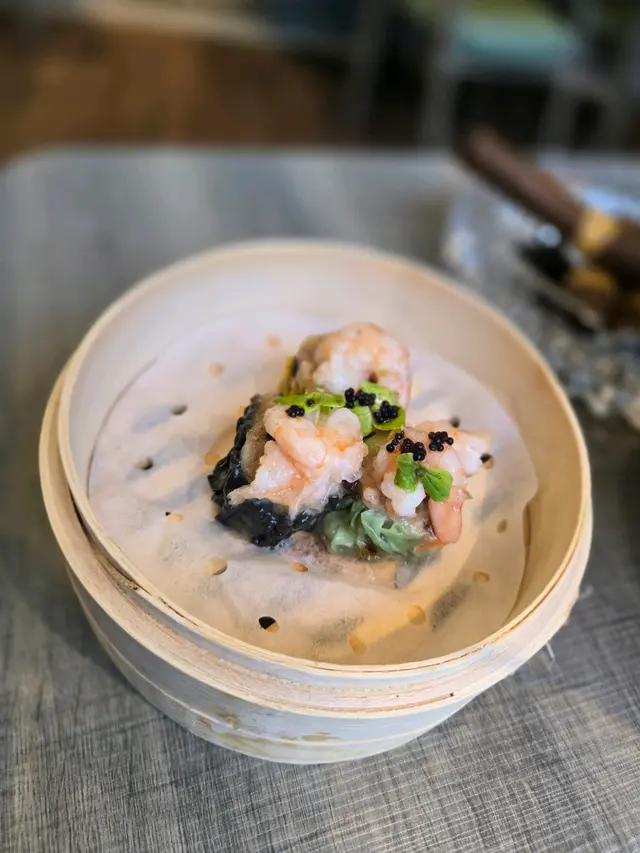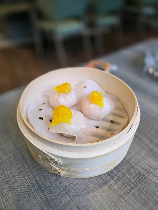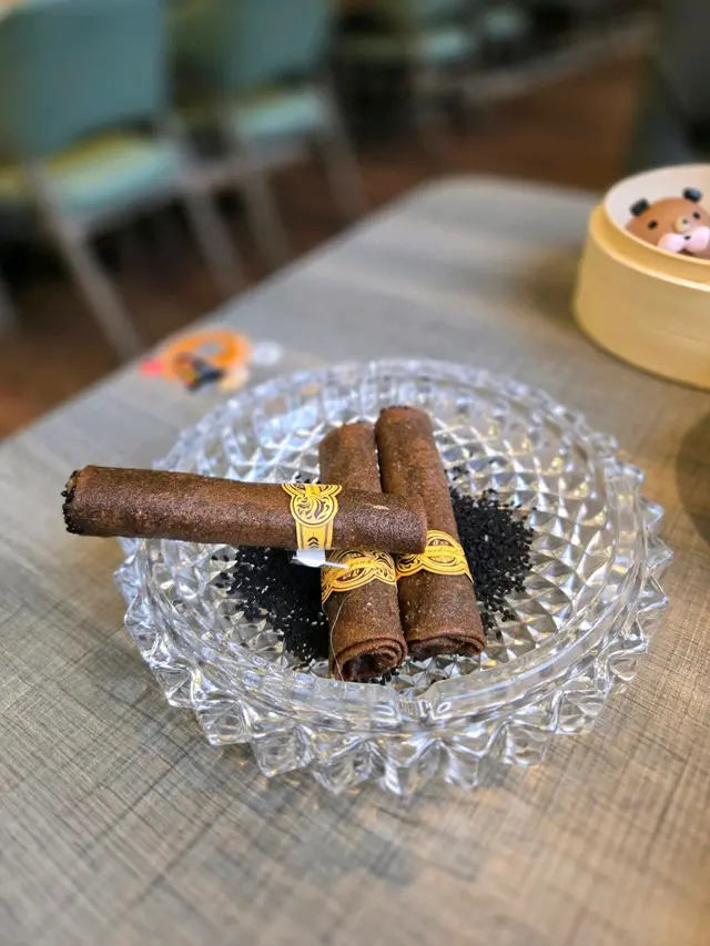 最精彩的當然是「潮州滷水炸乳鴿」,外脆內嫩,肉質鮮美,令人回味無窮。還有「黑蒜蝦燒賣」,黑蒜味四溢,蝦肉鮮甜,好到不得了。再來的「抱抱蝦餃」和「雪茄春卷」有樣有內涵;吃得津津有味。