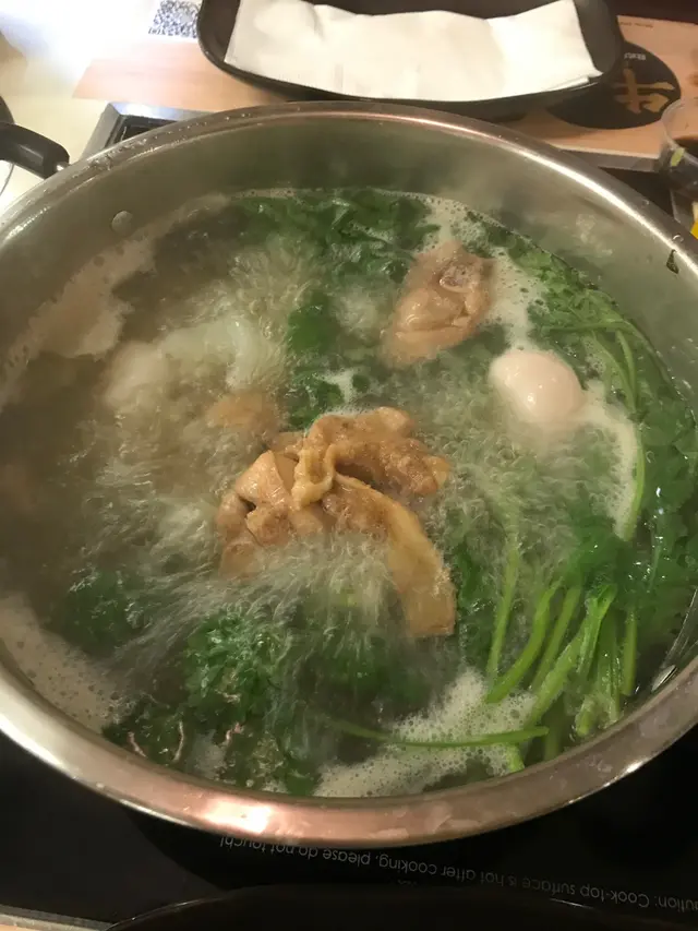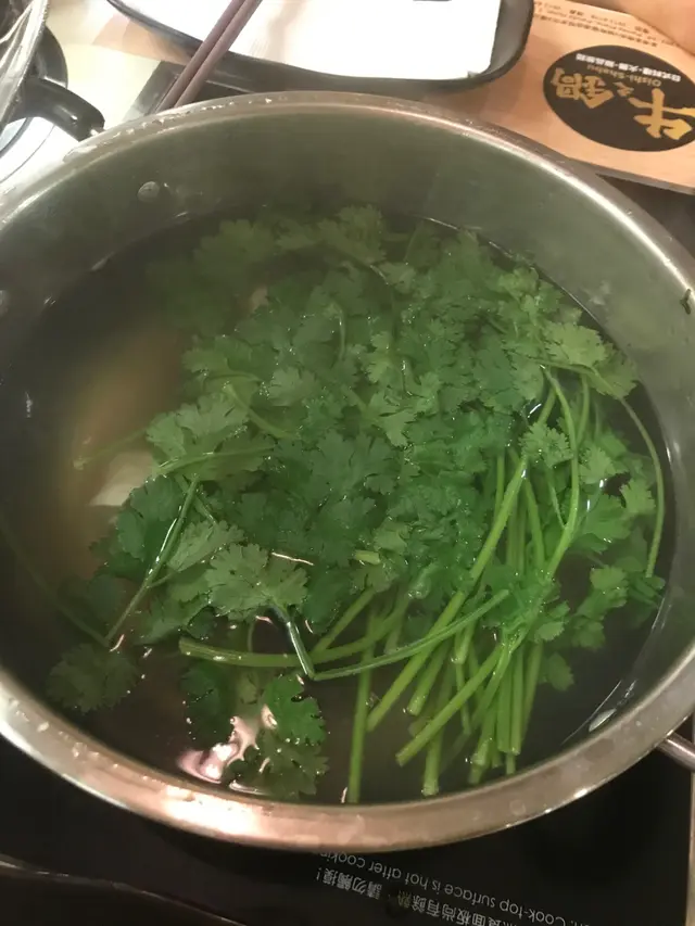 之後就打邊爐,清清地叫咗個皮蛋芫荽湯擺個喎