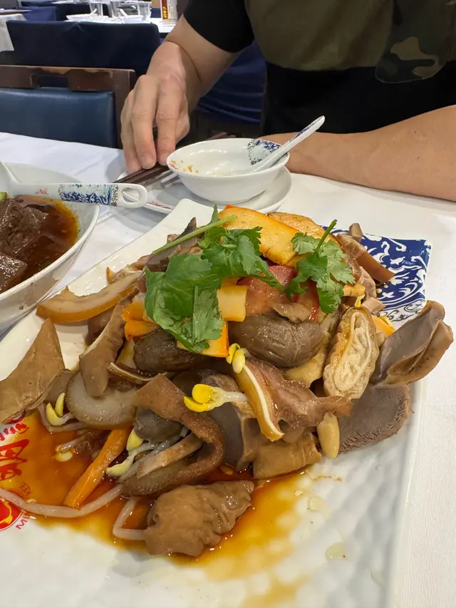 份量超大, 有最少六種滷水, 有豬耳, 紅腸, 五花腩, 鵝腸, 墨魚, 鵝腎; 豬耳外層彈牙, 內裡軟淋, 有滿滿的膠質感; 五花腩肥瘦相間, 肥而不膩, 入口即化; 鵝腸軟嫩滑口又入味, 墨魚彈牙鮮味, 鵝腎細嫩, 爽口, 有嚼勁, 全部都有獨特嘅滷香氣。