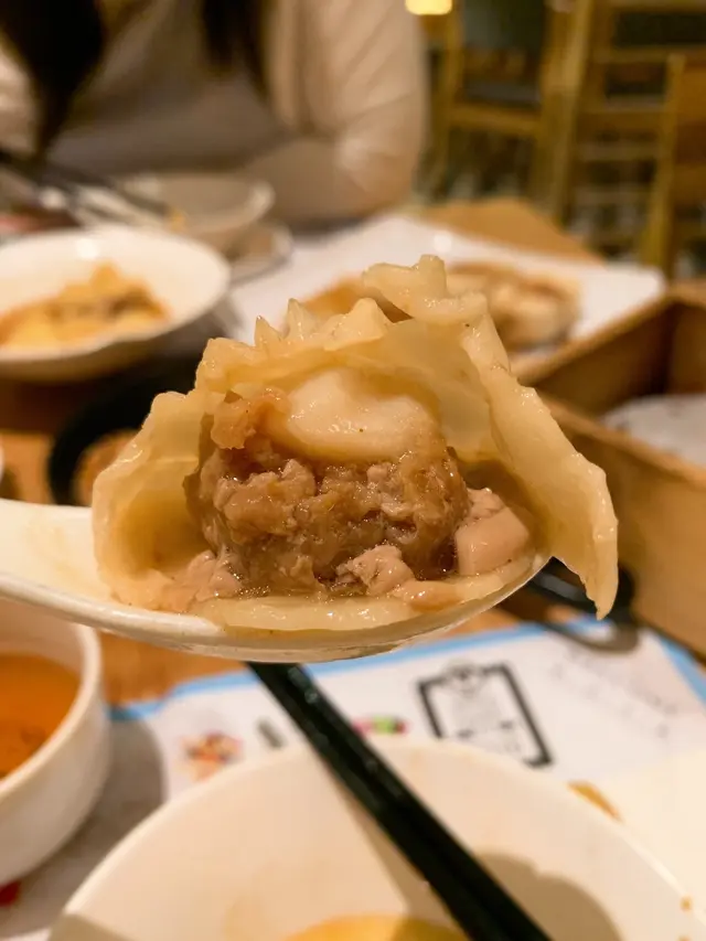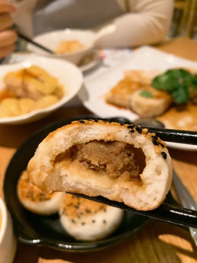 最後我哋再叫咗個山東一口牛肉包$48,一客有5粒,外層金香鬆脆,入面嘅牛肉餡就惹味多叶,加上嘅鐵板上,所以上枱時仲係熱辣辣