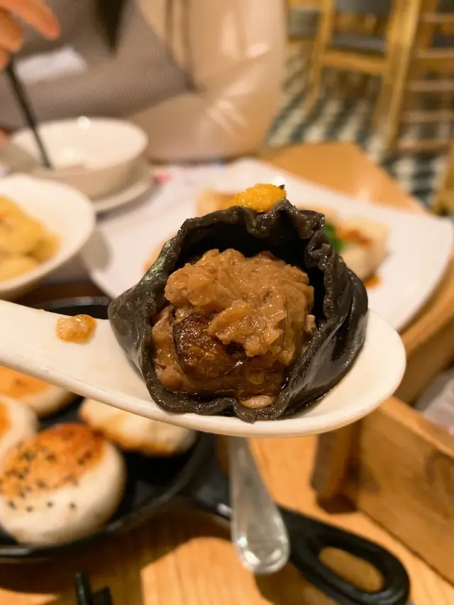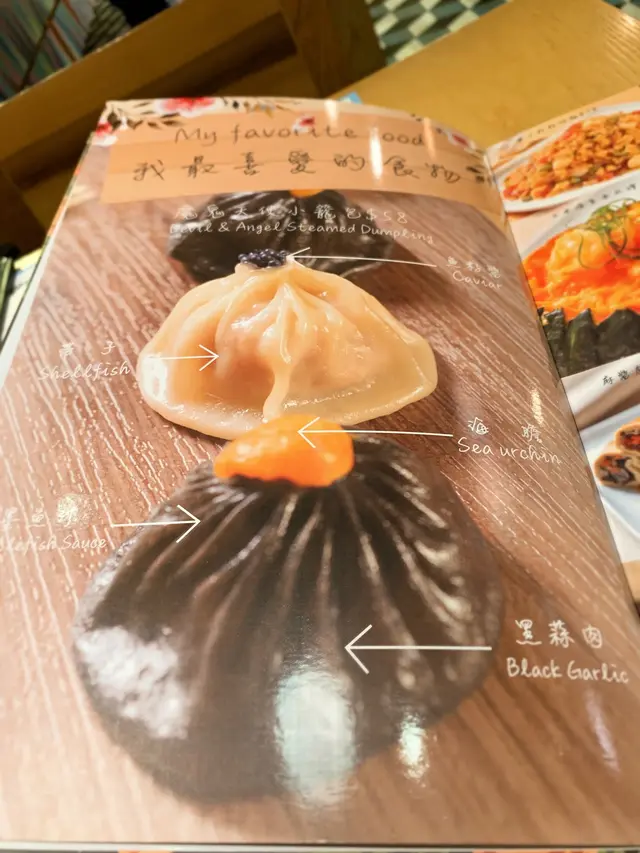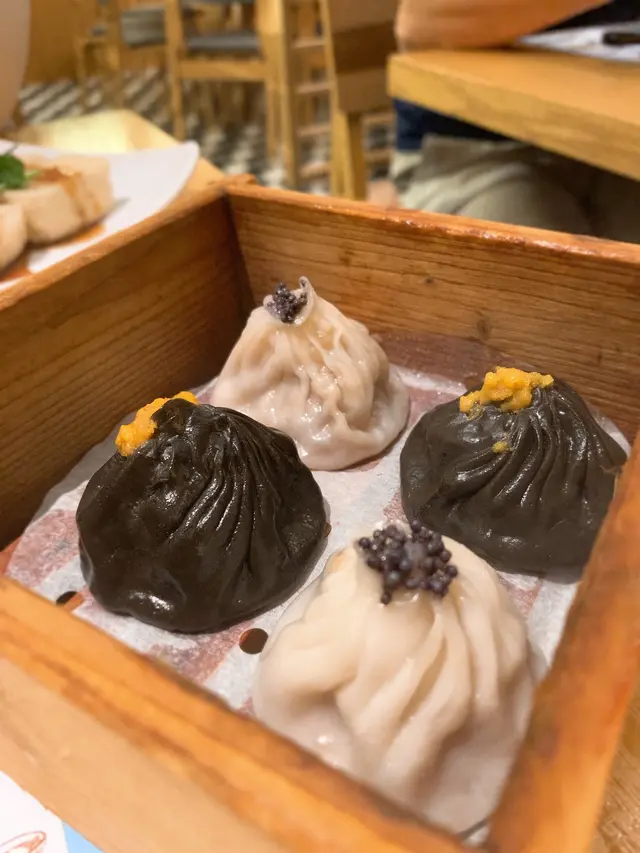 一籠有四件,兩件魔鬼,兩件天使!魔鬼嗰款就用咗墨魚汁、黑蒜肉、豬肉同埋海膽造成,口感豐富又多汁