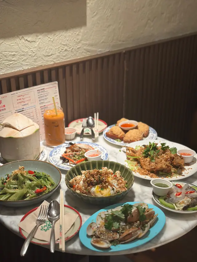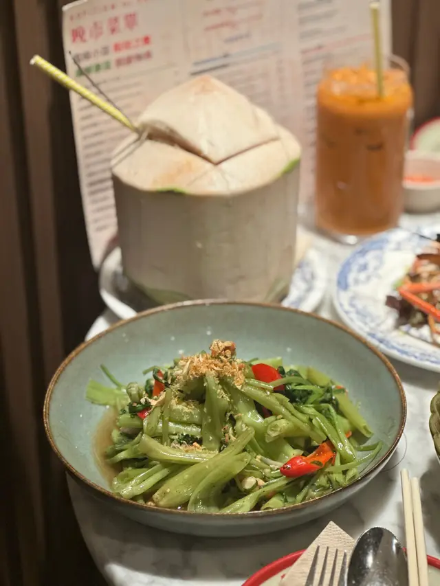 另外凍泰式奶茶冰爽香濃,甜度適中,剛好中和辣香同炭香,飲一口即時解膩又解渴 🧋。新鮮椰青亦好正,椰水清甜透心涼,飯後來一個最舒服 🥥