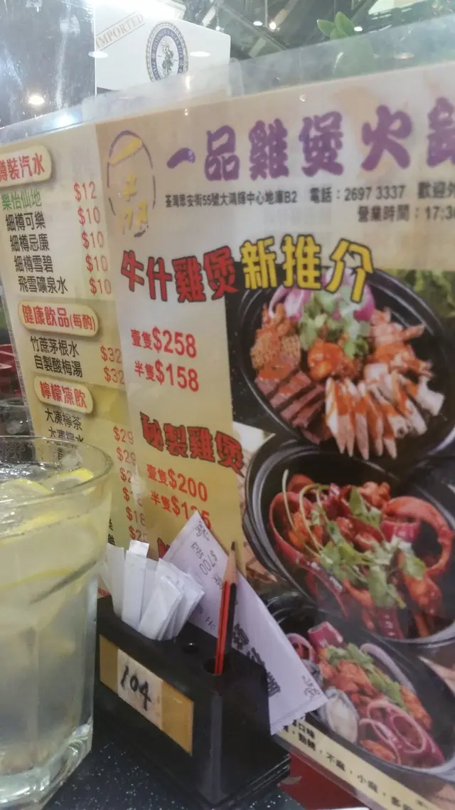 這店主打著3款的雞煲,包括秘製雞煲(半隻125元),牛什雞煲(半隻158元)和豪華版的鮑魚雞煲(半隻168元)。價錢由半隻125起,而我們兩口子則選擇了最經濟的秘製雞煲,把重點放在之後的邊爐配料。
