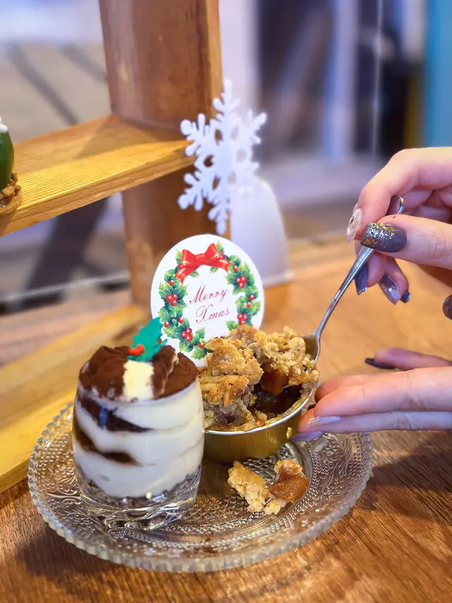 🍰 栗子tart同apple crumble都係聖誕嘅常見甜品,兩款嘅撻皮做得鬆脆👌🏻,前者粟子蓉打得細滑;後者crumble脆而重牛油香,中間塞滿蘋果粒🍎,略YIM不夠cinammon味🫣!