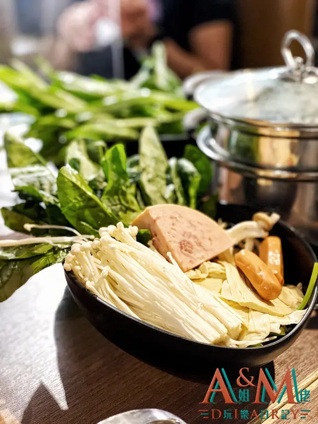 一人兩鍋嘅另一個鍋就係用嚟打邊爐,湯底選擇好多,我哋就分別揀咗廣島蠔土手鍋同伊勢海老湯底。伊勢海老湯底嘅湯好香蝦味,非常濃郁。任食嘅選擇好多,喺自取區有唔少蔬菜、丸同菇類。
