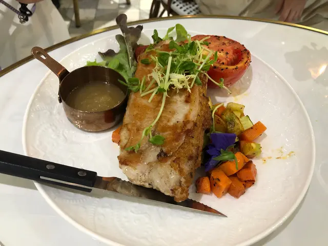 朋友就揀咗燒豬肉眼扒!佢特別之處係配咗個蘋果果蓉,甜甜地感覺上可以減低肥膩感~ 我試左少少,覺得乾身咗d😆 朋友要用力去切😆😆