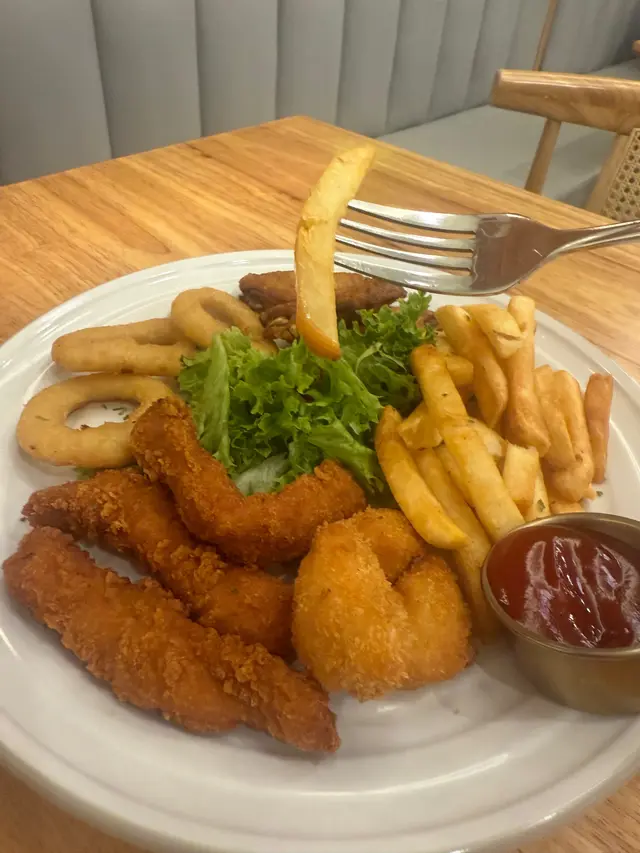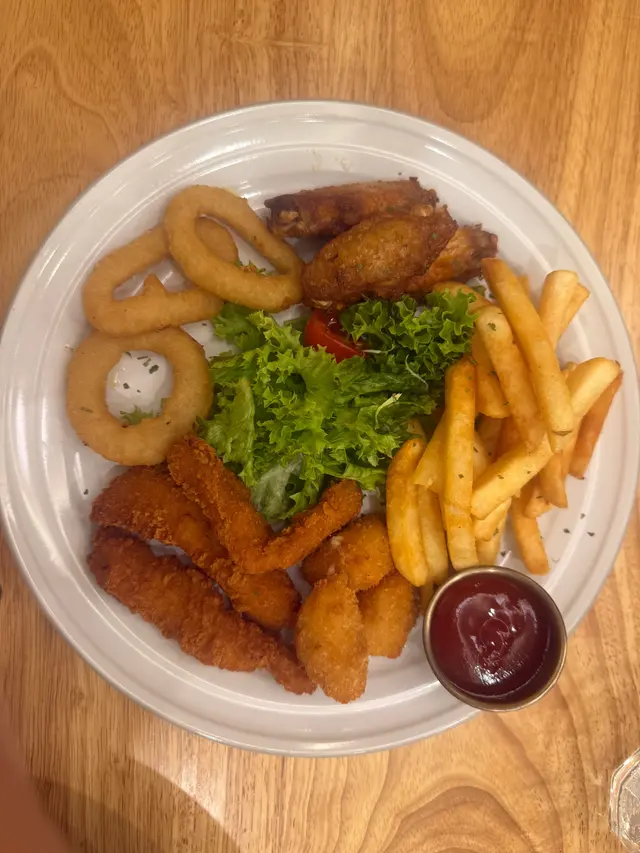 炸物併盤有幾樣炸物,分別係炸薯條,雞亦、雞柳、洋蔥圈同埋一口芝士,每款的炸物都只係得幾舊,分量啱啱好,炸物唔會油夠香脆。