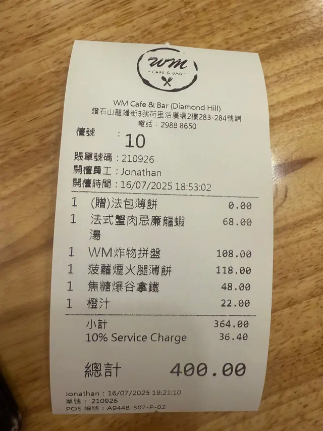 朋友搵到 間叫WM Cafe, 雖然我哋都無食過,但我見有Pizza食,咁就啱啦,我都想食Pizza。
