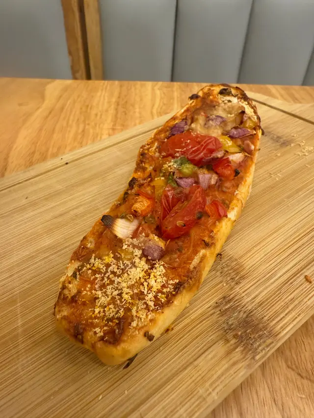 食物未到,先黎左個包,原來係餐廳送的薄餅,佢其實係半個法包整成0既薄餅。雖然係送,但係材料都好足,而且法包焗得好脆,作為餐前小食都好合格。