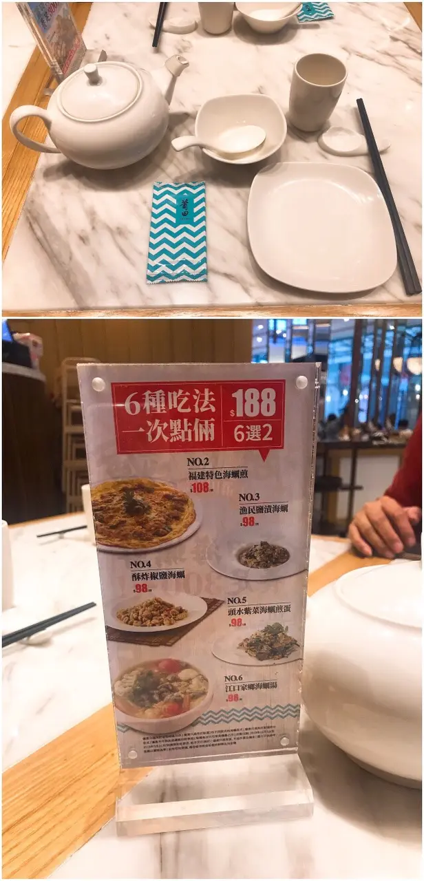 一坐下店員便送上花茶,仲向我地推介海蠣菜式,有6款選擇,6選2只係$188非常抵食,海蠣煎必選啦!另外揀左椒鹽海蠣,老公喜歡吃香口野