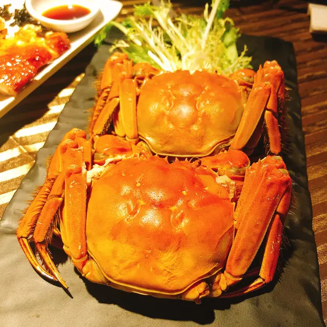 我哋預早訂咗兩隻5両大閘蟹,蟹肉結實鮮甜,蟹膏濃郁 Creamy😋,跟埋杯薑茶,有助溫熱驅寒。