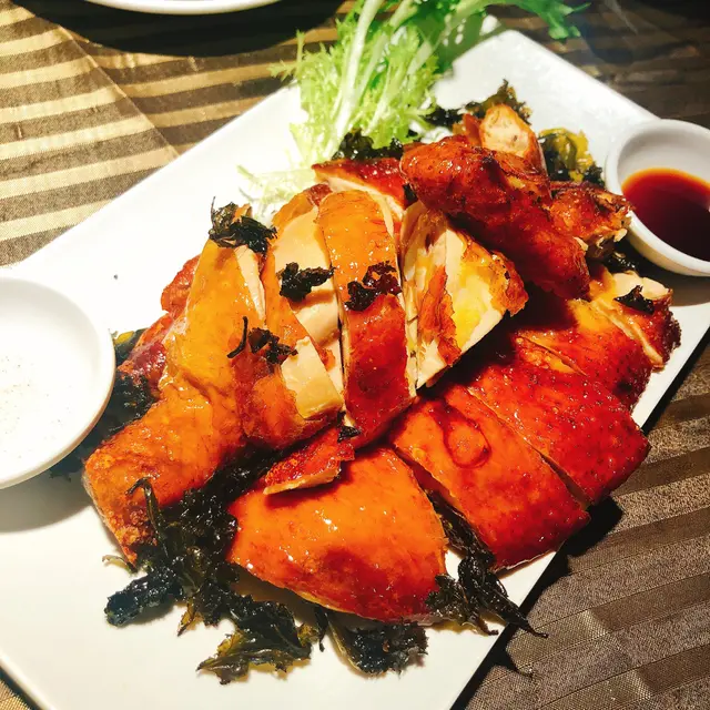 茶香燻雞半隻,份量算大,雞皮脆薄,但肉質略嫌唔夠滑,可以話係鞋,茶味亦唔濃。