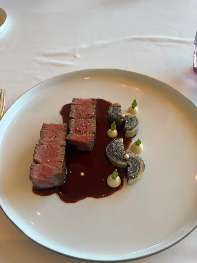 女朋友想食好啲,所以揀咗間米芝蓮嘅餐廳食嘢,入到去冇乜人,感覺環境幾靚,位置都坐得舒服,揀咗個平平哋嘅套餐食,佢嘅牛肉真係幾好食嘅,但個粟米真畫蛇添足,完全唔知有咩好食,裏面大部份人嘅年紀過咗40歲,證明依間適合老人家嚟嘅餐廳,或者上咗年紀鍾意寧靜嘅地方,個景幾靚,但係冇窗口位安排到,最後尾嘅