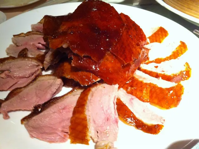 脆皮北京填鴨,侍應哥哥即場片比您睇,以示新鮮即做無取巧,先片半隻上枱食住先。放係碟正中既係背脊位淨脆皮,真係非常緊緻香脆,好多年無食都如此脆既片皮鴨喇 ﹗靚鴨身材勁 fit,肥瘦適中,肉質超嫩滑,並無多餘脂肪,見皮下只有薄薄一層油脂 ﹗正呀 ﹗坊間酒樓一般都做到鴨皮油淋淋又巢又腍,隻鴨又勁多肥膏,皮厚又多油,癡肥咁濟 ﹗明閣收 HKD600 烤全鴨,以質量同價錢取勝 ﹗抵食啦 ﹗