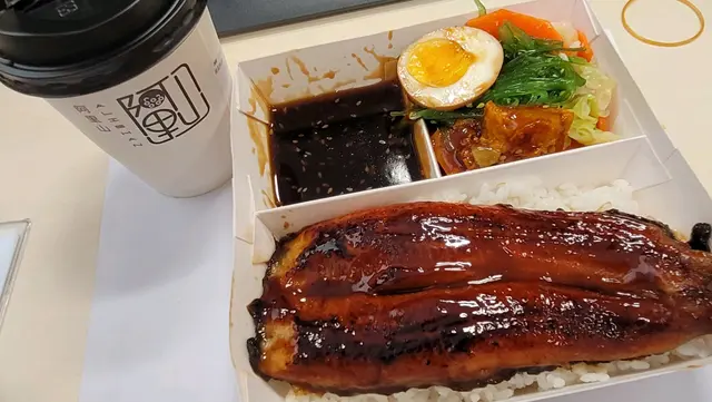 便當既賣相幾吸引,幔魚既份量都幾大&望落好厚肉,另外有一格係配菜同半隻蛋,加一格幔魚汁,本身跟餐配左杯無糖茶飲,叫左杯熱桂花茶。
